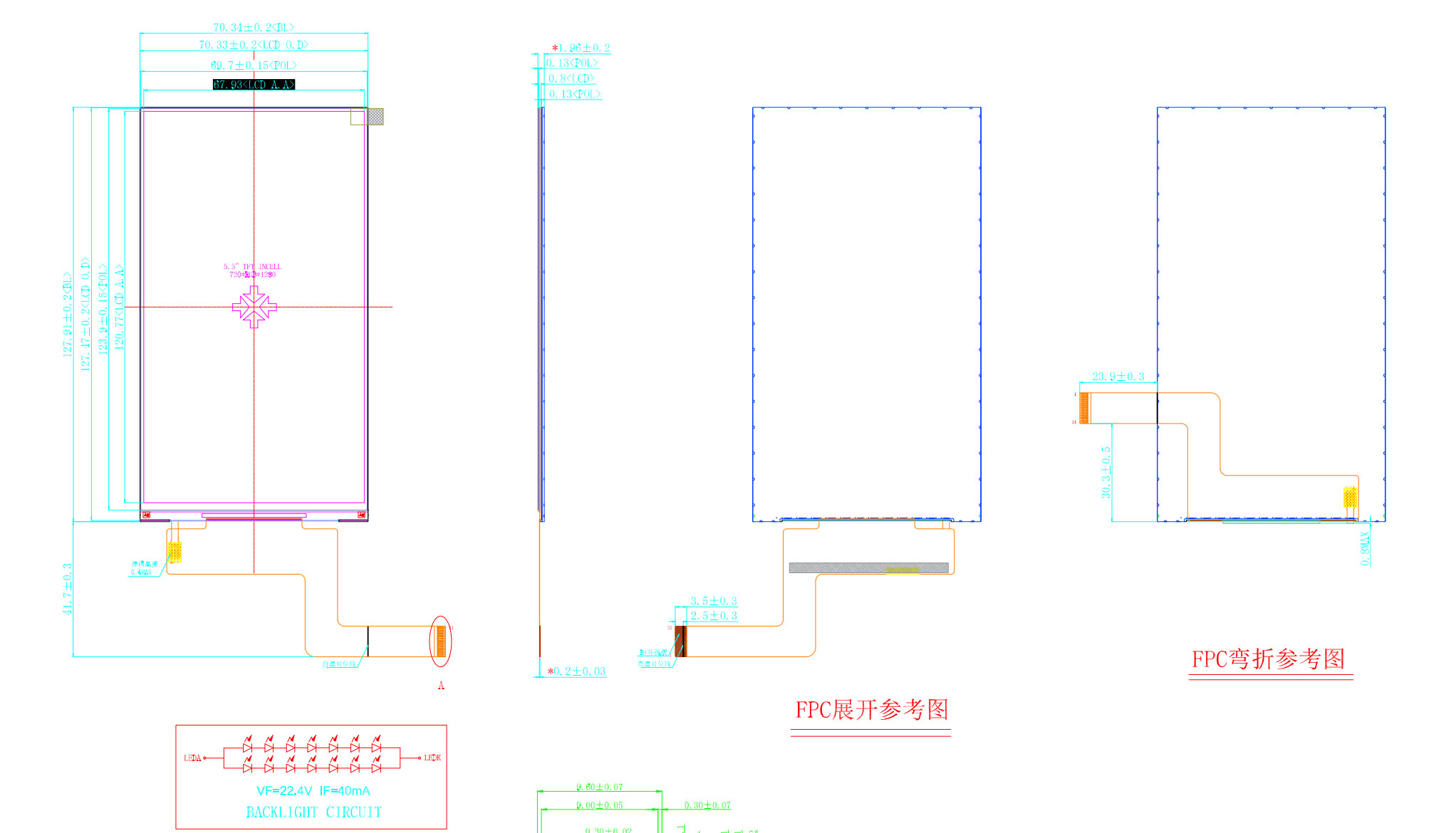 | Dimensionell kontur | 70,34(W)*127.91(H)*1.96(T) | Bakgrundsbelysning lysdioder | 14 st |