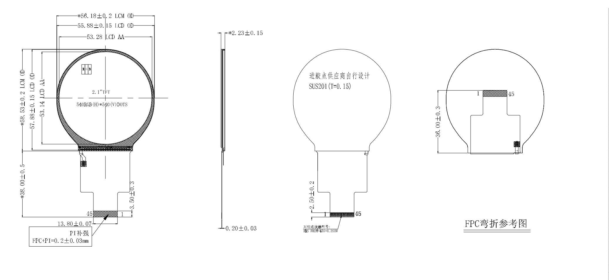2,1-tums Incell Round LCD 540*540 QSPI/SPI/MCU
